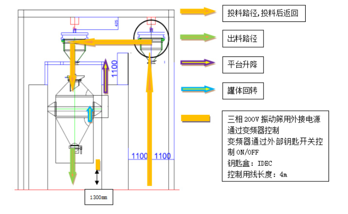 AKITA-2000L雙錐形混合機是專為客戶陶瓷原材料(粉末)小批次間差異去除的混合而設計的。